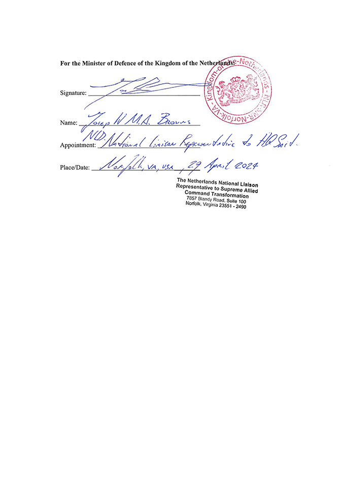 Nīderlandes Karalistes aizsardzības ministrijas vārdā