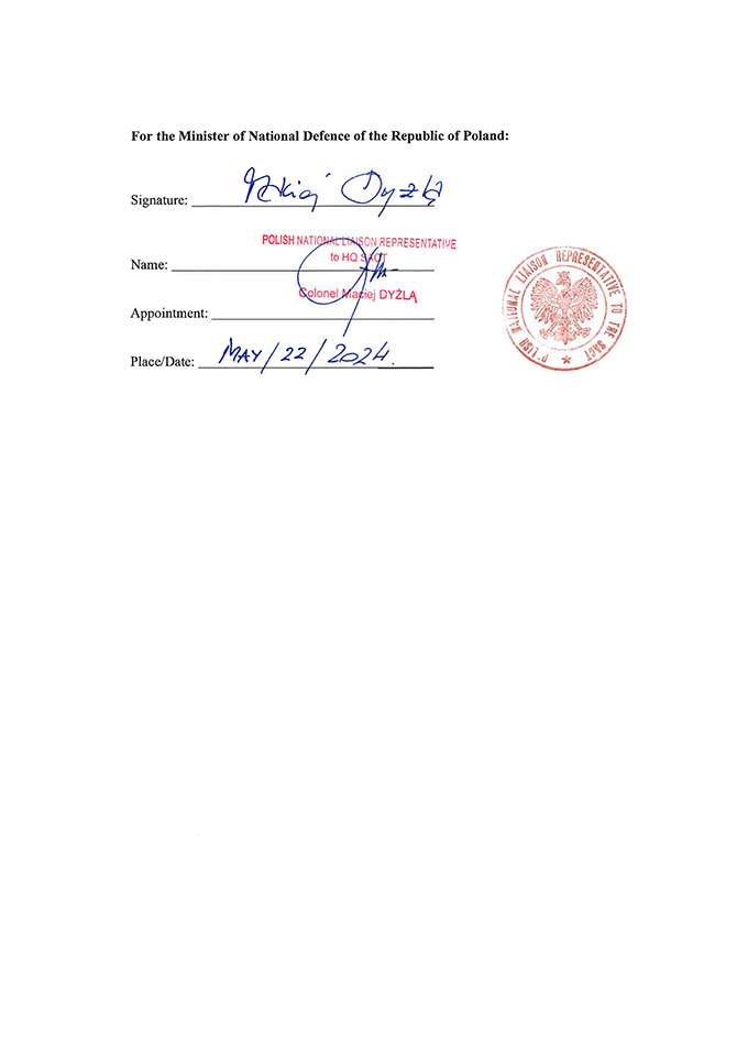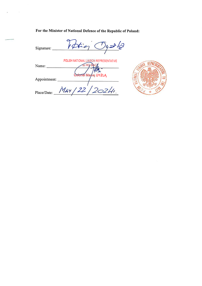 KARALISTES AIZSARDZĪBAS MINISTRIJU, POLIJAS REPUBLIKAS NACIONĀLĀS AIZSARDZĪBAS