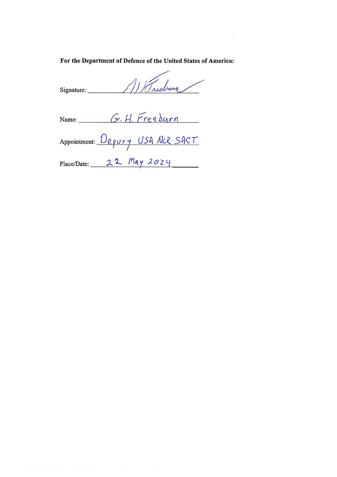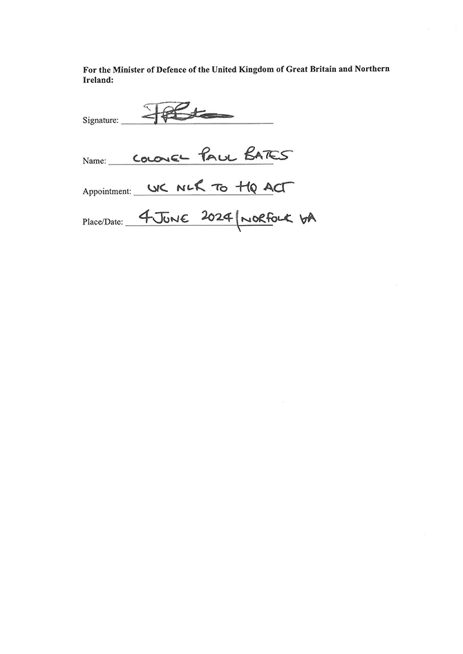 Lielbritānijas un Ziemeļīrijas Apvienotās Karalistes Aizsardzības ministrijas vārdā