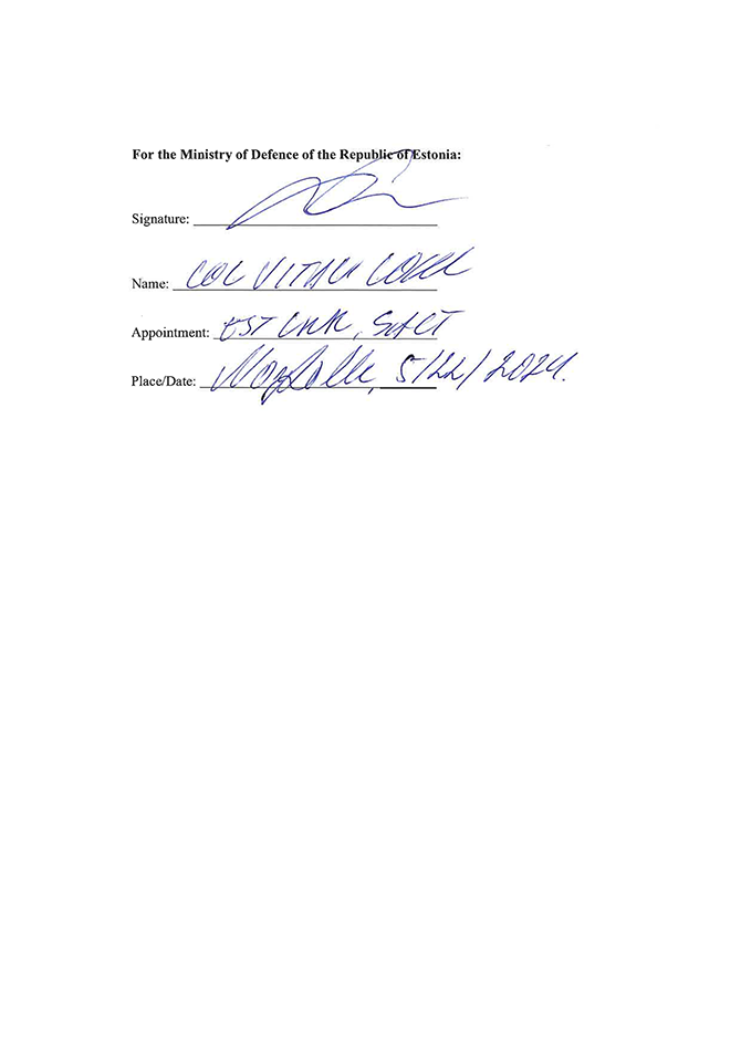 Igaunijas Republikas Aizsardzības ministrijas vārdā