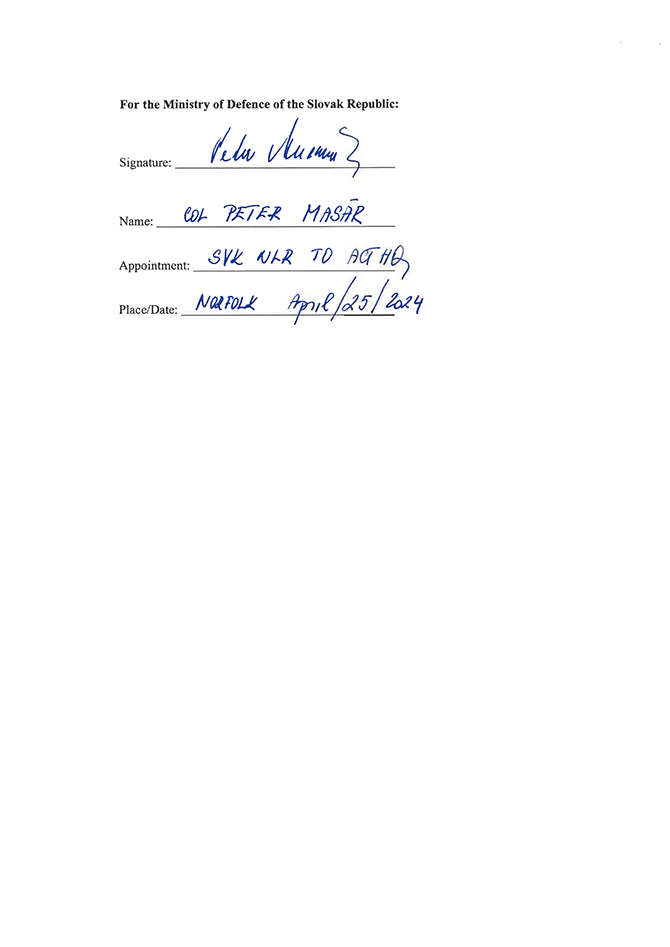 Slovākijas Republikas Aizsardzības ministrijas vārdā