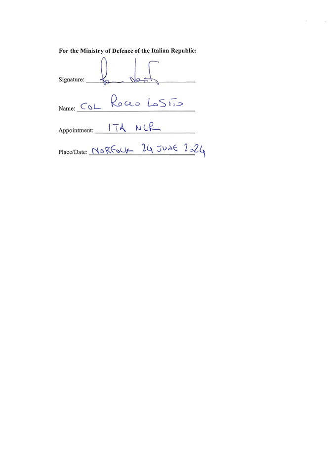 ministriju, Itālijas Republikas Aizsardzības ministriju, Lietuvas Republikas