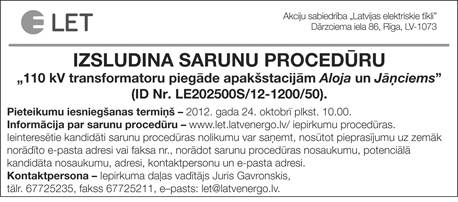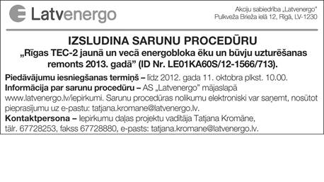 2012.gada 11.septembrī ir piešķirtas tiesības slēgt iepirkuma līgumu SIA ,,Rem Pro'' (reģ. Nr.41503041904, juridiskā adrese Imantas iela 25, Daugavpils, LV-5401) par summu Ls 96 258,00 (deviņdesmit seši tūkstoši divi simti piecdesmit astoņi lati un 00 santīmi) bez PVN.
