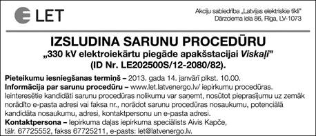 iesniegšanas termiņš: 2013.gada 11.janvāris plkst. 11.00. Kontaktpersona: