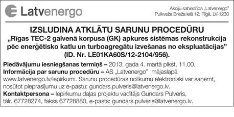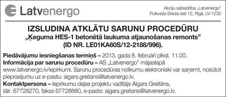 Projektu iesniegumu iesniegšanas termiņš pagarināts līdz 2013.gada 18.februārim.