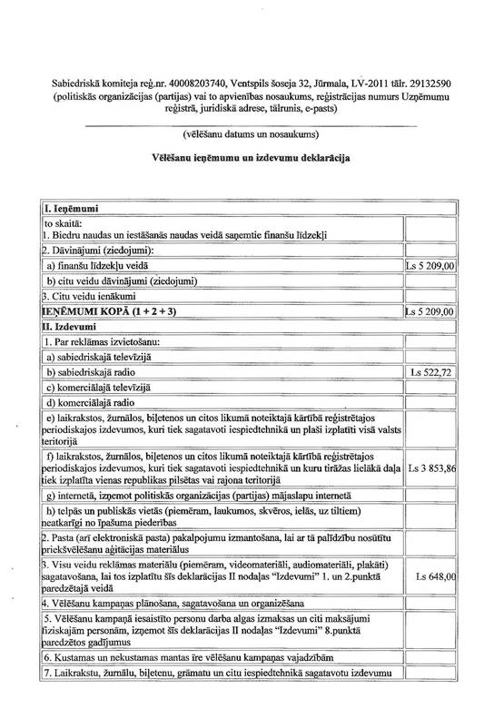 Politiskās partijas "Sabiedriskā Komiteja" 2013.gada 16.jūlijā iesniegtā 2013.gada 1.jūnija pašvaldību vēlēšanu ieņēmumu un izdevumu deklarācija