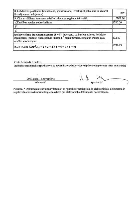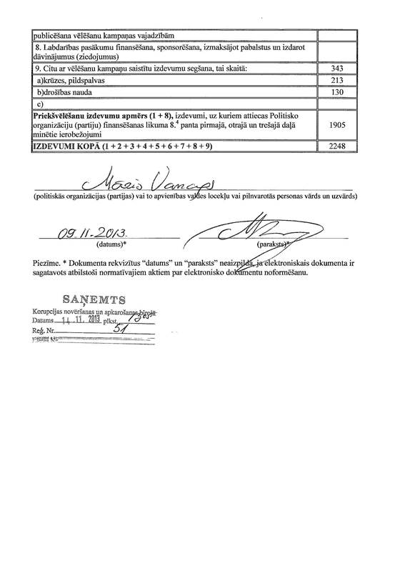 Politisko partiju apvienības "Zaļo un Zemnieku savienība" precizētā 2013.gada 1.jūnija pašvaldību vēlēšanu ieņēmumu un izdevumu deklarācija