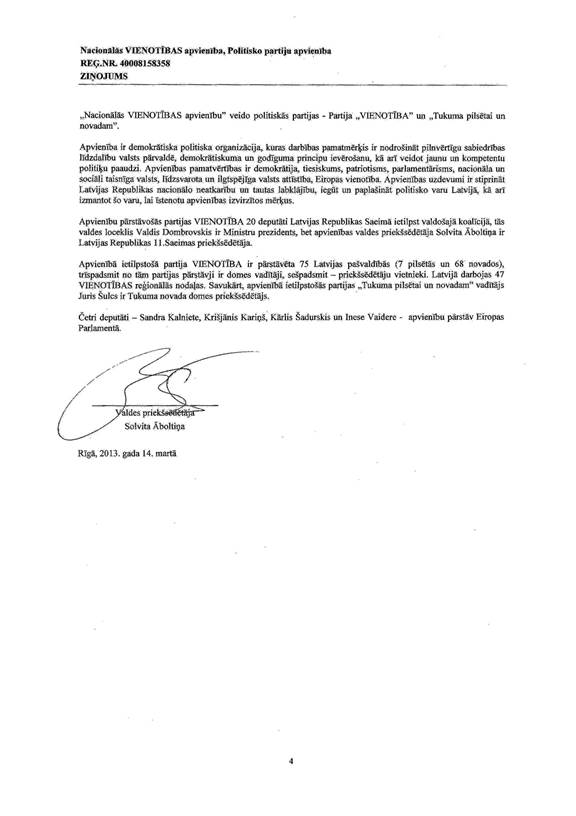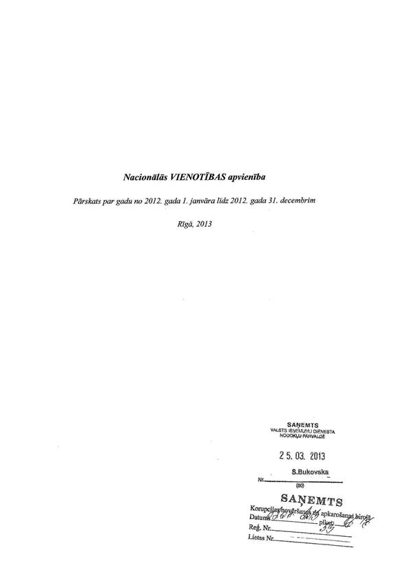 Nacionālās Vienotības apvienības gada pārskats par 2012.gadu