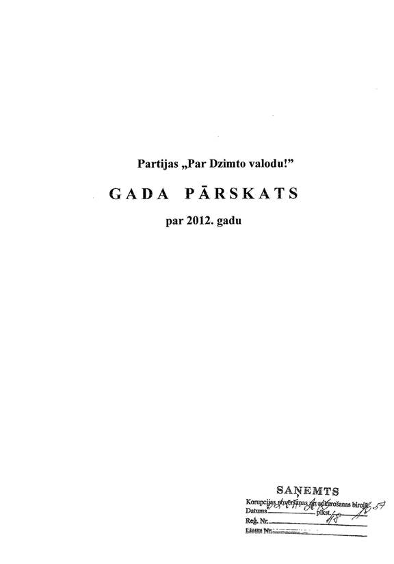 Politiskās partijas "Mūsu partija" gada pārskats par 2012.gadu