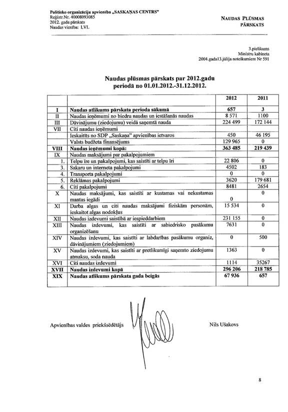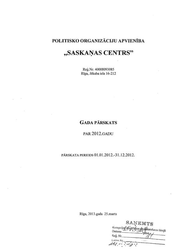 Politiskās partijas "Sociāldemokrātiskā partija ""Saskaņa" gada pārskats par 2012.gadu