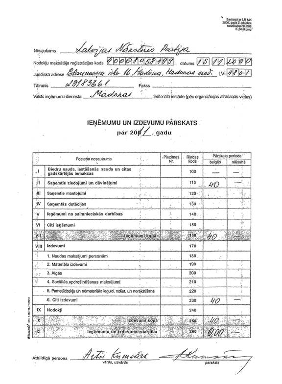 Politiskās partijas "Mūsu zeme" 2012.gada pārskats