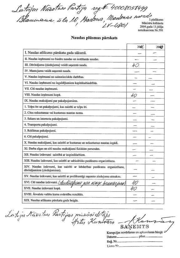 Politiskās partijas "Tautas kontrole" 2012.gada finanšu pārskats