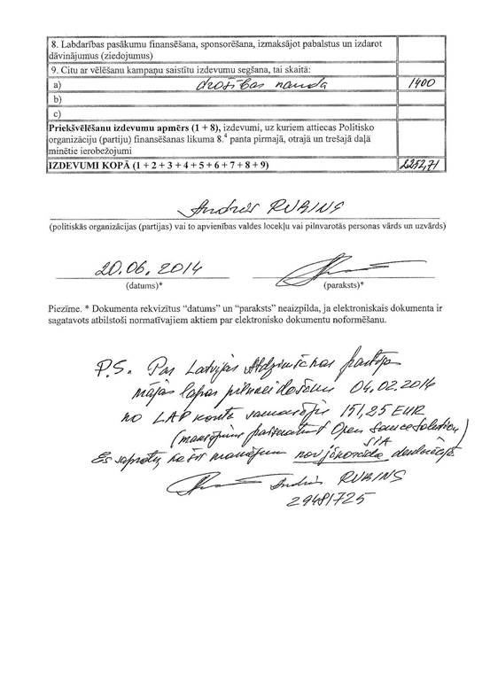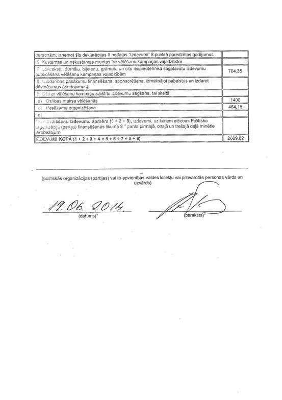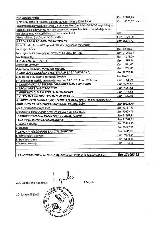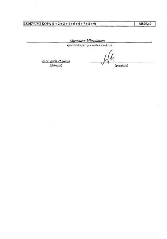 Politiskās partijas "Latvijas attīstībai", reģ.Nr.40008218695, 2014.gada 24.maija Eiropas Parlamenta vēlēšanu ieņēmumu un izdevumu deklarācija
