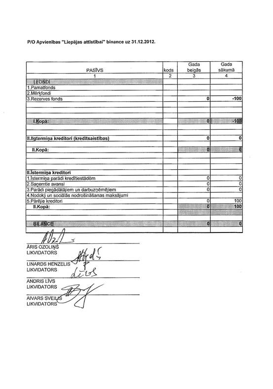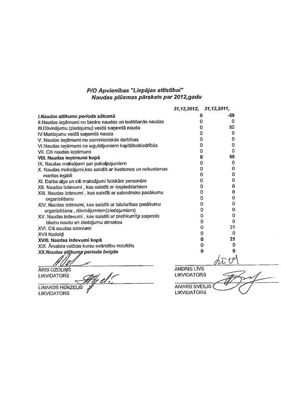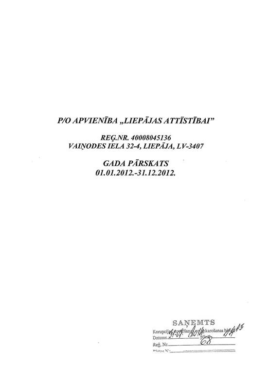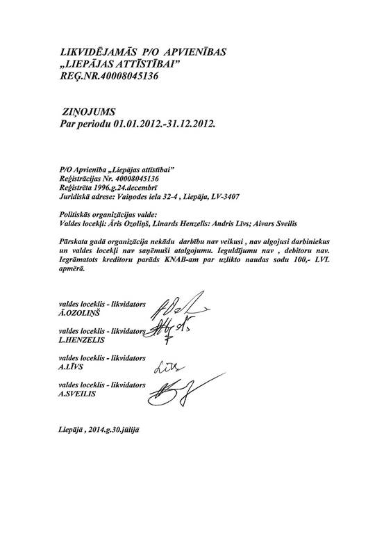 Politiskās partijas "Apvienība LIEPĀJAS ATTĪSTĪBAI", reģ. Nr. 40008045136, 2014.gada 31.jūlijā iesniegtais gada pārskats par 2012.gadu