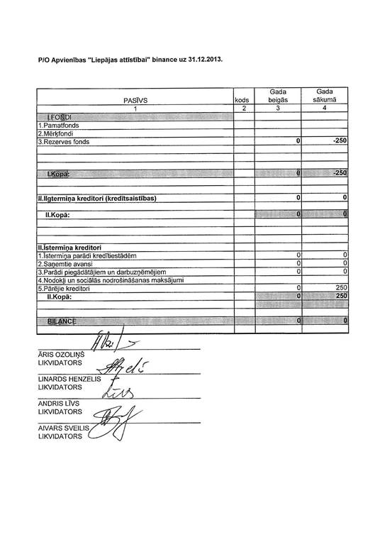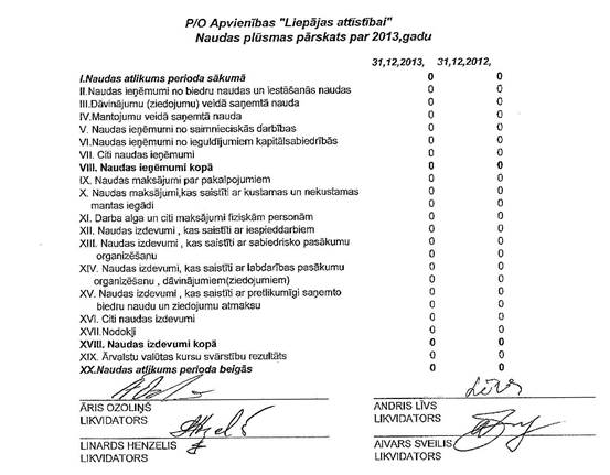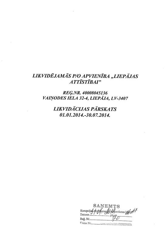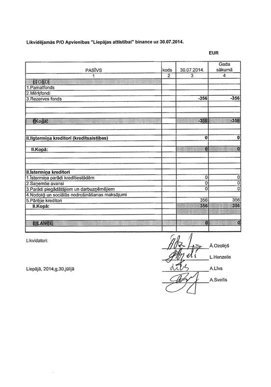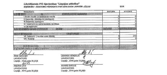 Politiskās partijas "Apvienība LIEPĀJAS ATTĪSTĪBAI", reģ. Nr. 40008045136, 2014.gada 31.jūlijā iesniegtais likvidācijas gada pārskats par laika periodu no 2014.gada 1.janvāra līdz 2014.gada 30.jūlijam