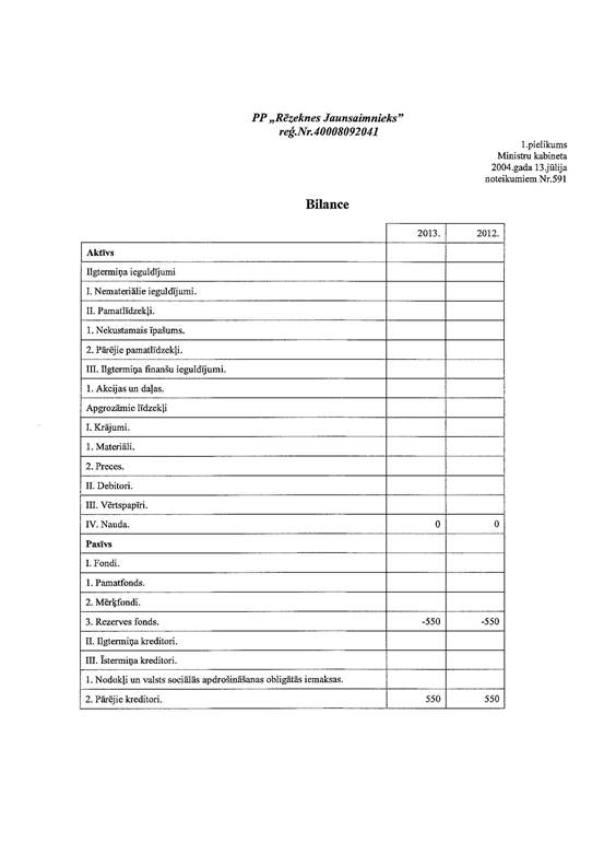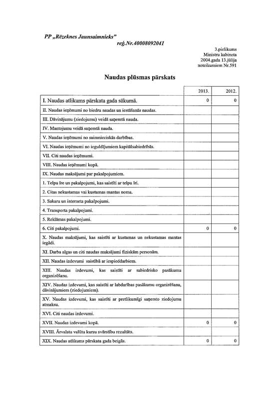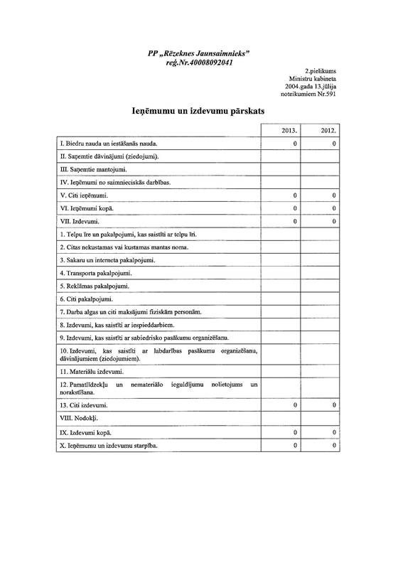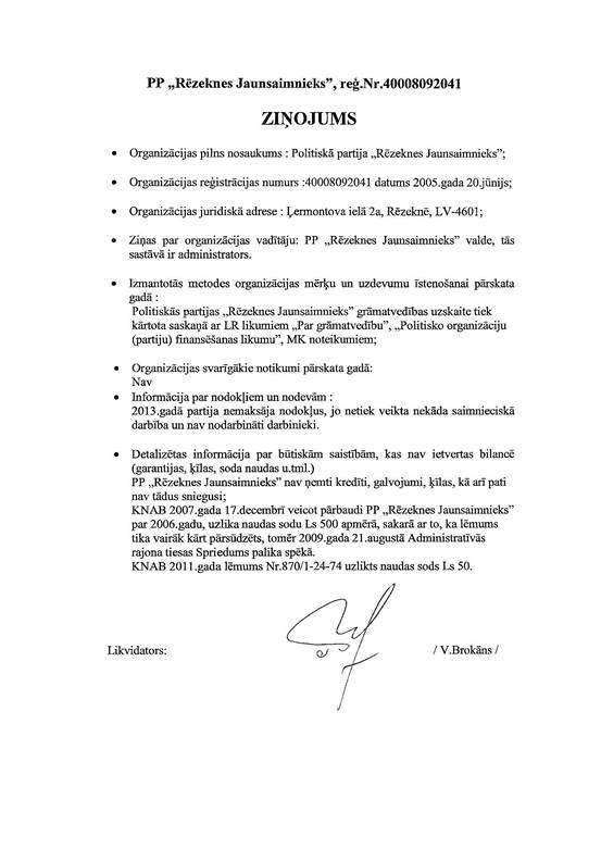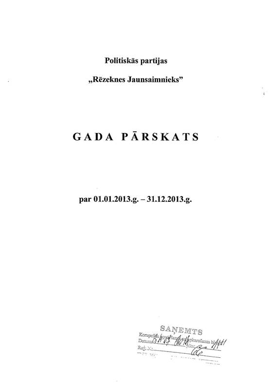 Politiskās partijas "Rēzeknes Jaunsaimnieks", reģ. Nr. 40008092041, 2014.gada 24.jūlijā iesniegtais precizētais gada pārskats par 2013.gadu