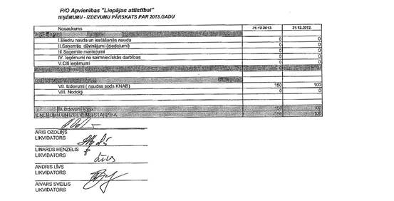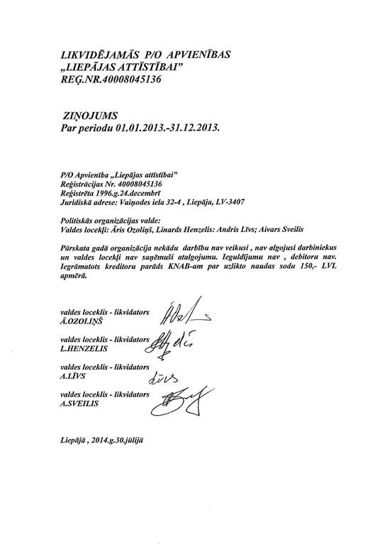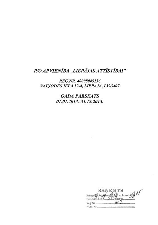 Politiskās partijas "Apvienība LIEPĀJAS ATTĪSTĪBAI", reģ. Nr. 40008045136, 2014.gada 31.jūlijā iesniegtais gada pārskats par 2013.gadu
