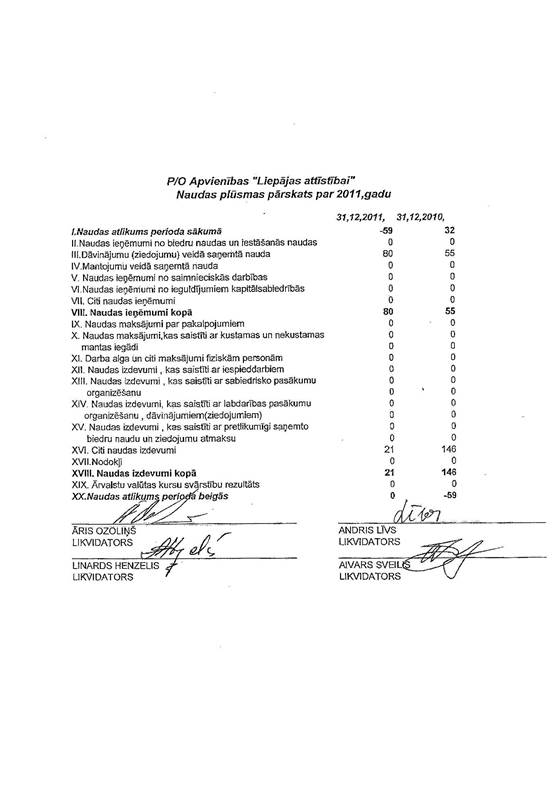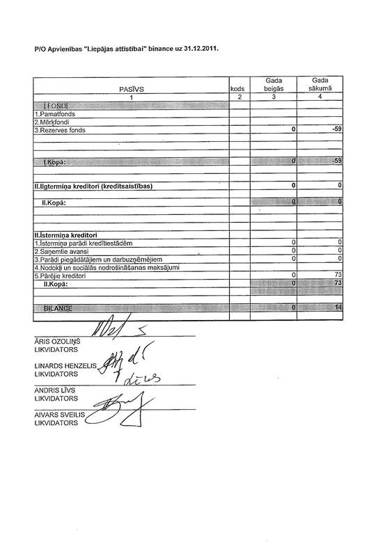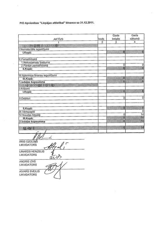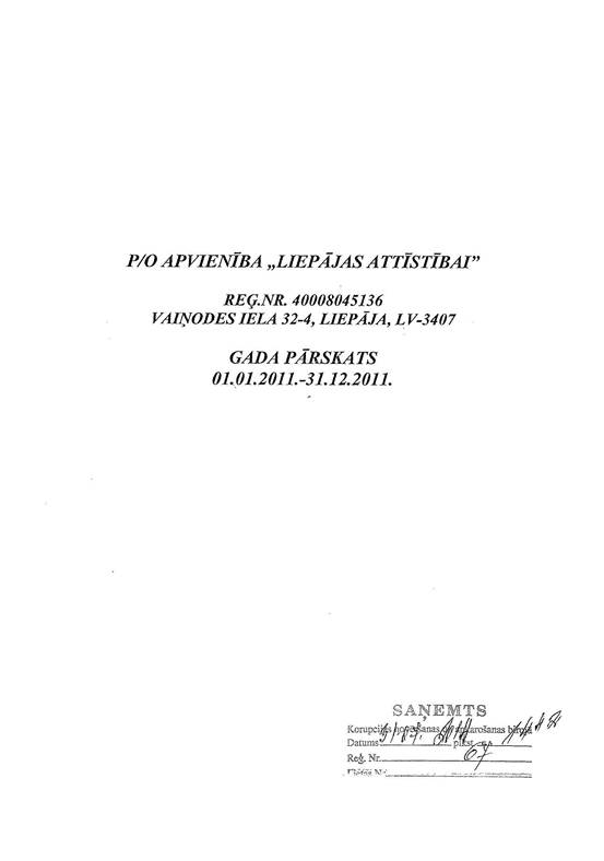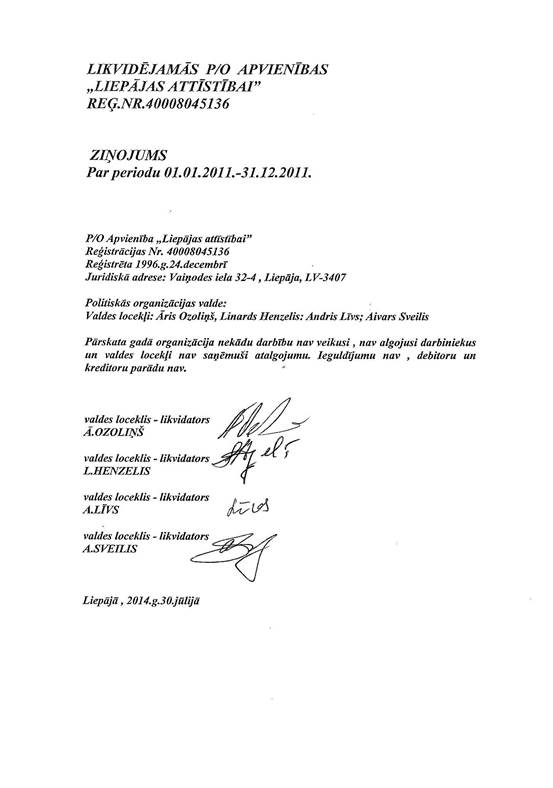 Politiskās partijas "Apvienība LIEPĀJAS ATTĪSTĪBAI", reģ. Nr. 40008045136, 2014.gada 31.jūlijā iesniegtais gada pārskats par 2011.gadu