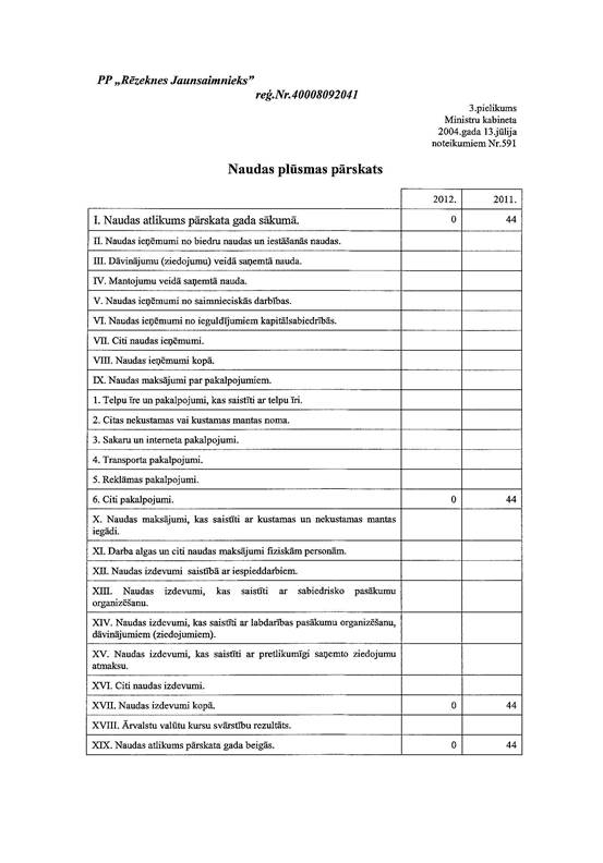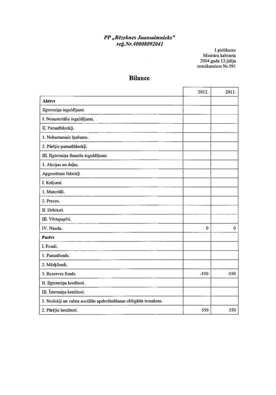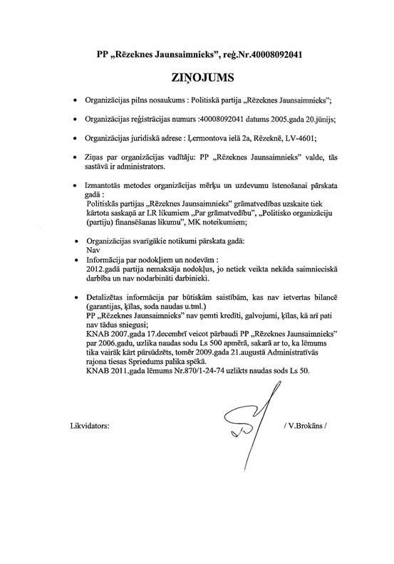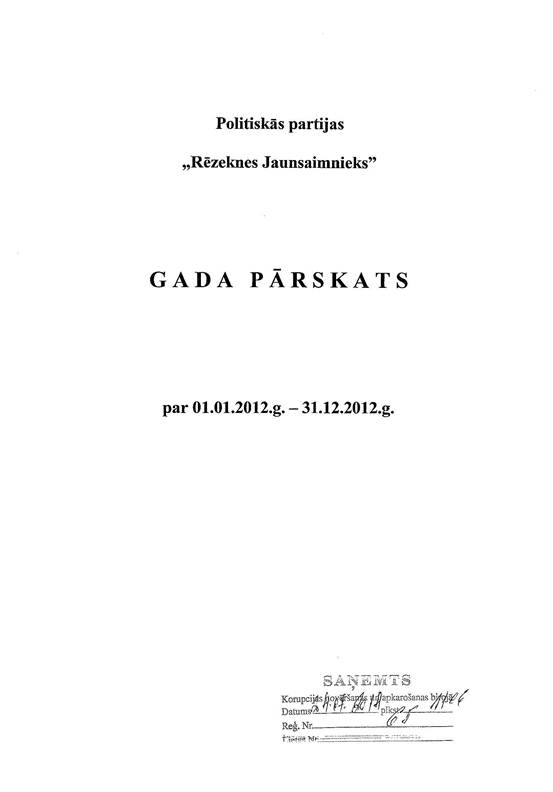 Politiskās partijas "Rēzeknes Jaunsaimnieks", reģ. Nr. 40008092041, 2014.gada 24.jūlijā iesniegtais precizētais gada pārskats par 2012.gadu