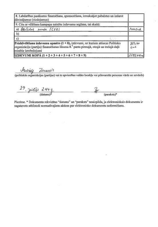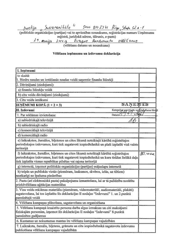 Politiskās partijas "Suverenitāte", reģ. Nr. 50008102341, 2014.gada 29.jūlijā iesniegtā precizētā 2014.gada 24.maija Eiropas Parlamenta vēlēšanu ieņēmumu un izdevumu deklarācija