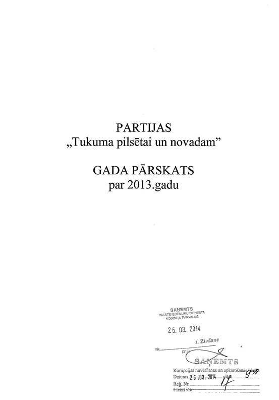Politiskās partijas "Tukuma pilsētai un novadam", reģ. Nr.40008083138, gada pārskats par 2013.gadu