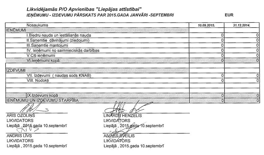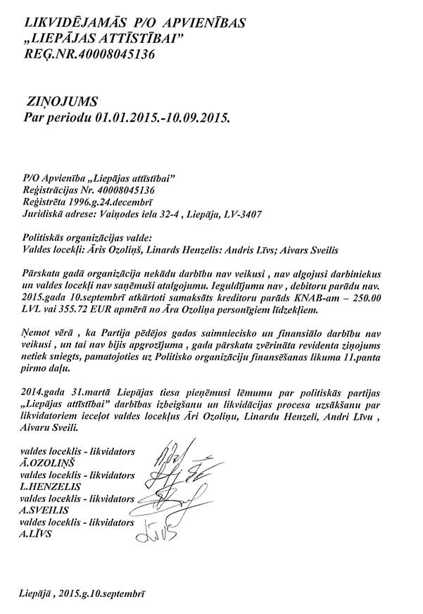 Politiskās partijas "Apvienība LIEPĀJAS ATTĪSTĪBAI", reģ. Nr. 40008045136, gada pārskats par 2015.gadu