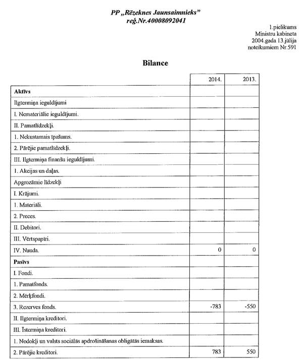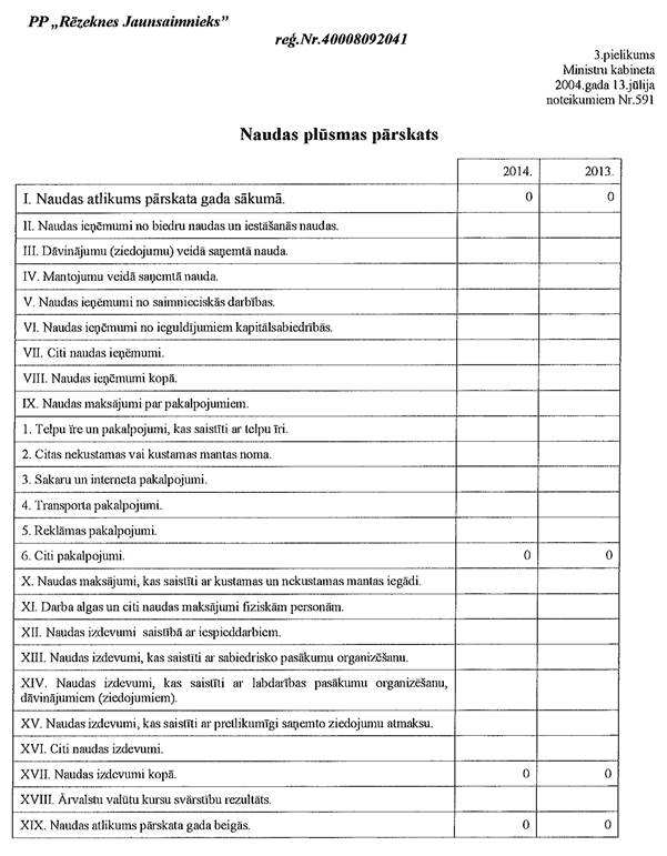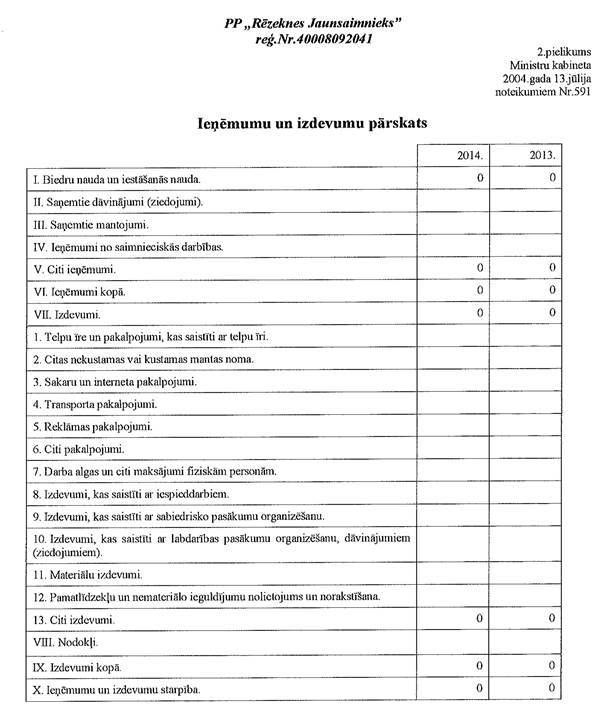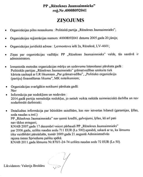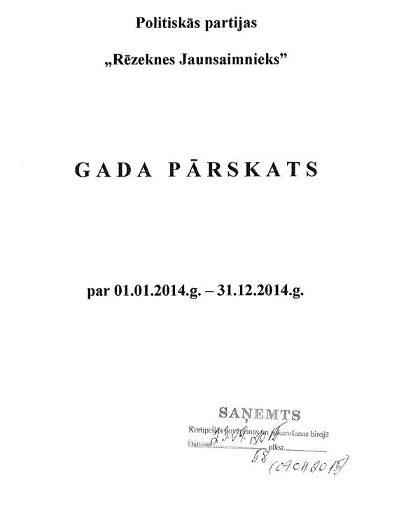 Politiskās partijas "Politiskā partija "Rēzeknes Jaunsaimnieks"", reģ.Nr.40008092041, precizēts gada pārskats par 2014.gadu