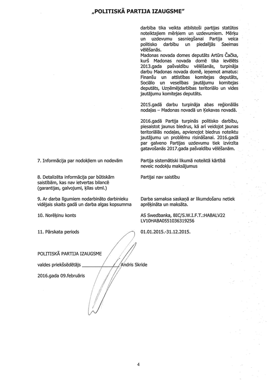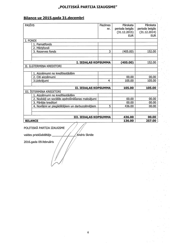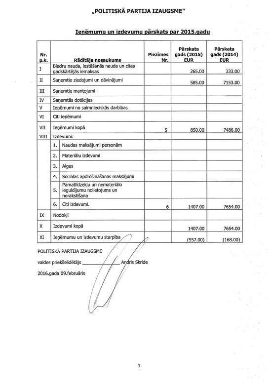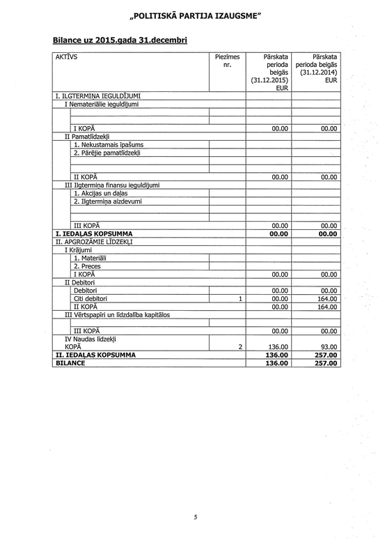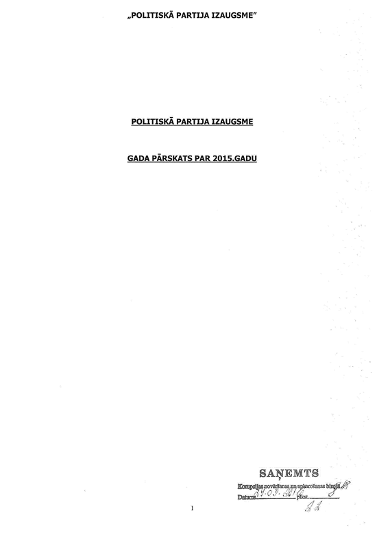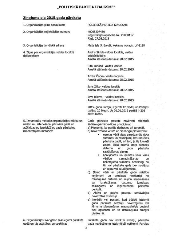 Politiskās partijas "POLITISKĀ PARTIJA IZAUGSME", reģ. Nr. 40008207460, gada pārskats par 2015.gadu
