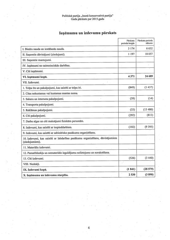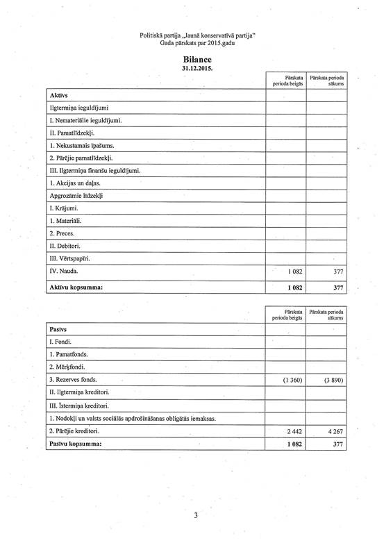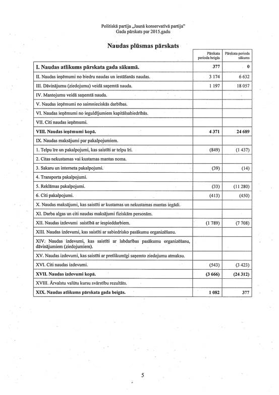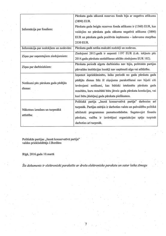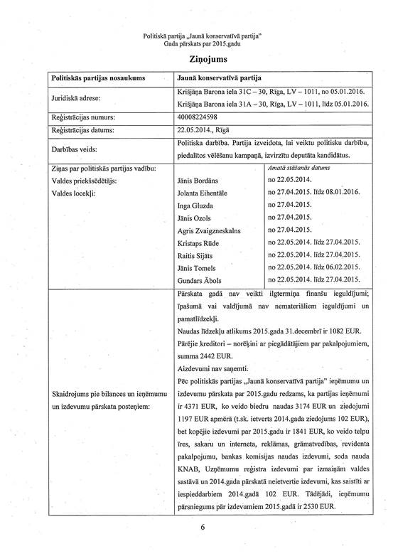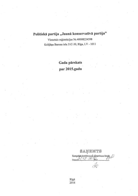 Politiskās partijas "Jaunā konservatīvā partija", reģ. Nr. 40008224598, gada pārskats par 2015. gadu