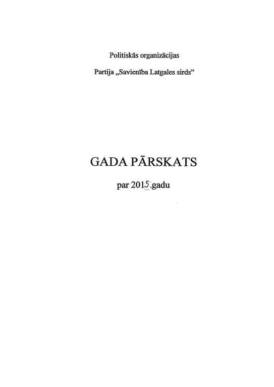 Politiskās partijas "Savienība Latgales sirds", reģ. Nr. 40008087873, gada pārskats par 2015. gadu