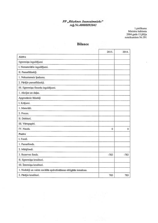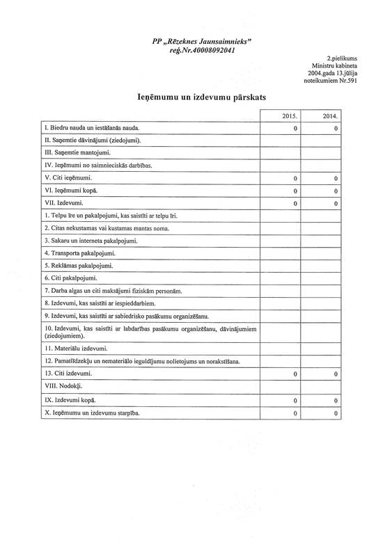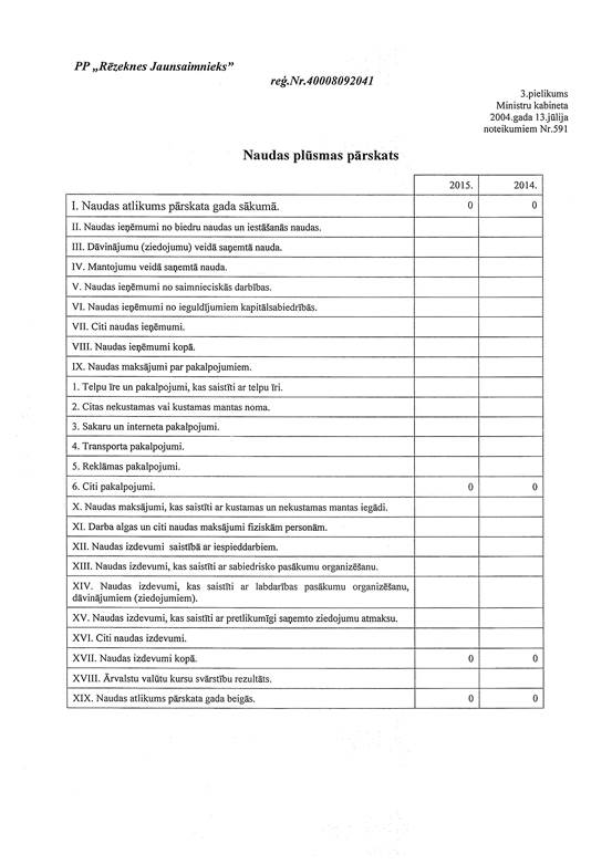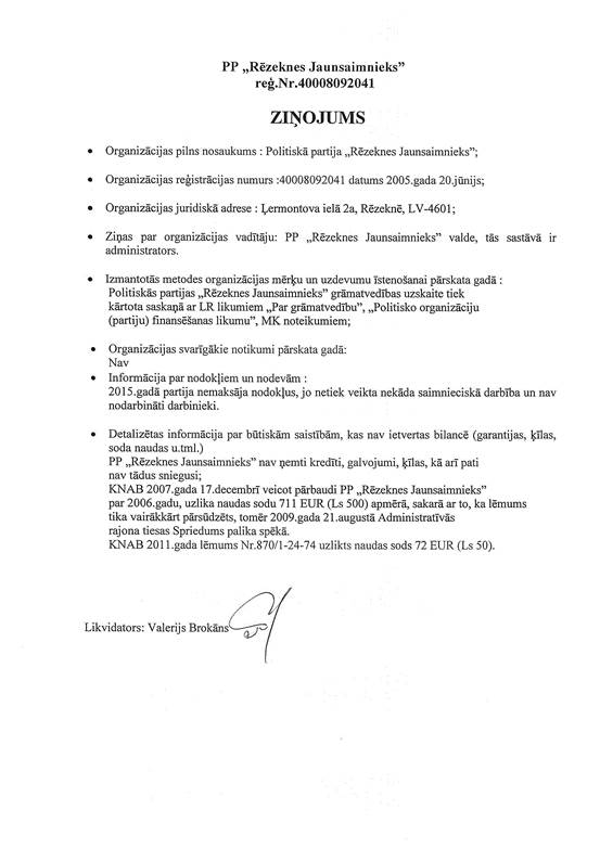 Politiskās partijas "Rēzeknes Jaunsaimnieks", reģ. Nr. 40008092041, gada pārskats par 2015. gadu