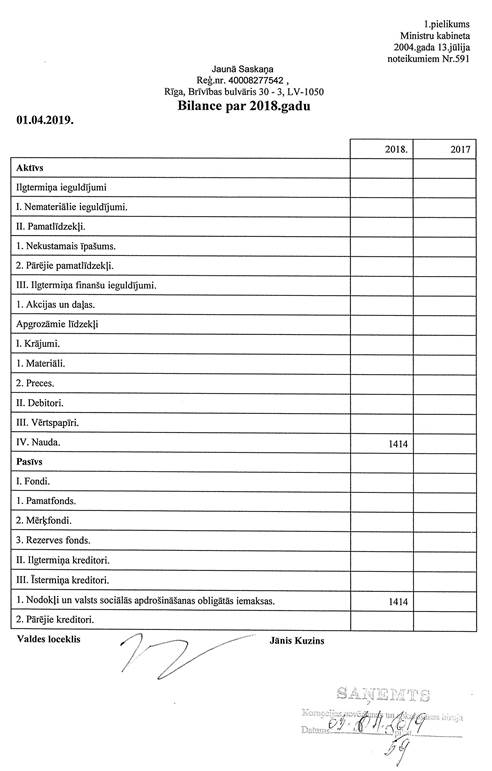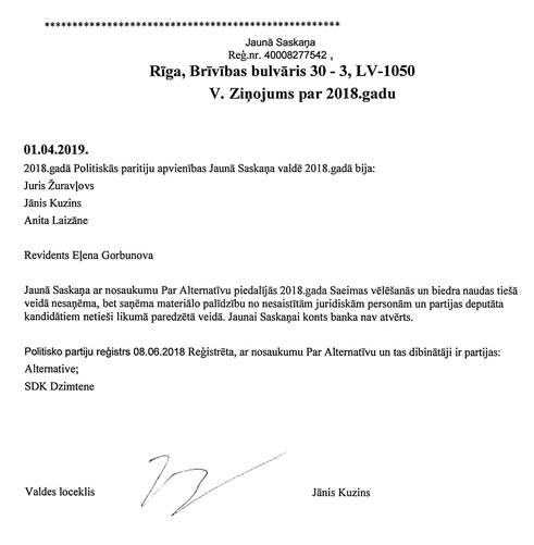 Politiskās partijas "Jaunā konservatīvā partija", reģ. Nr. 40008224598, gada pārskats par 2018.gadu