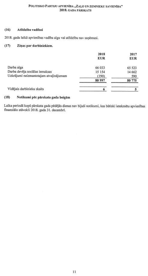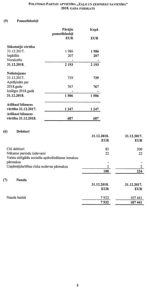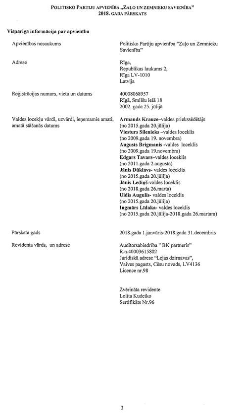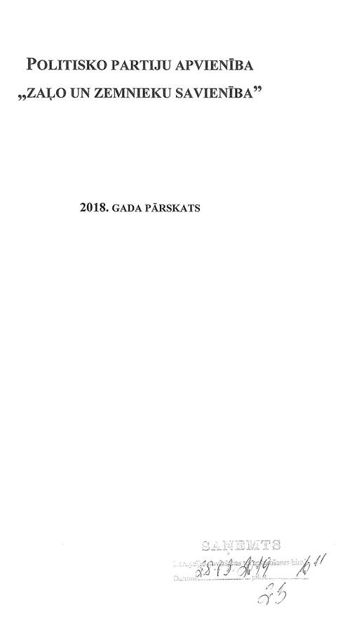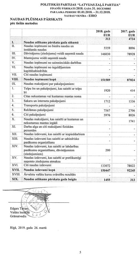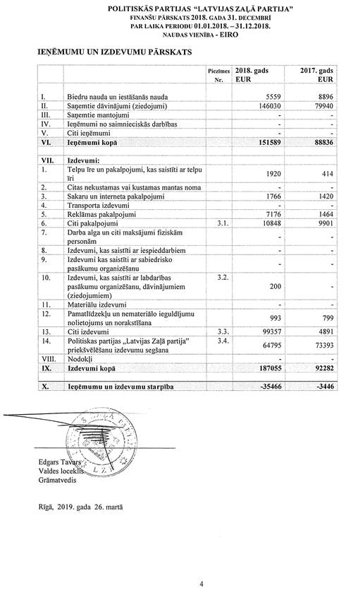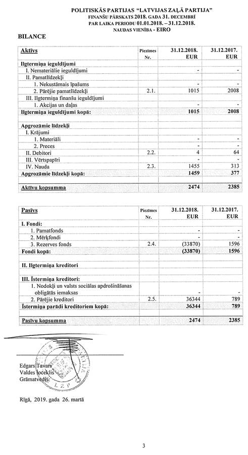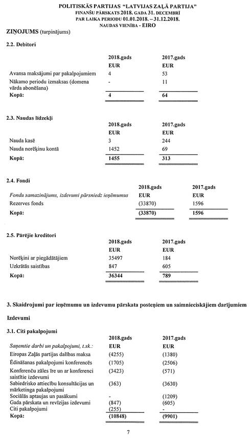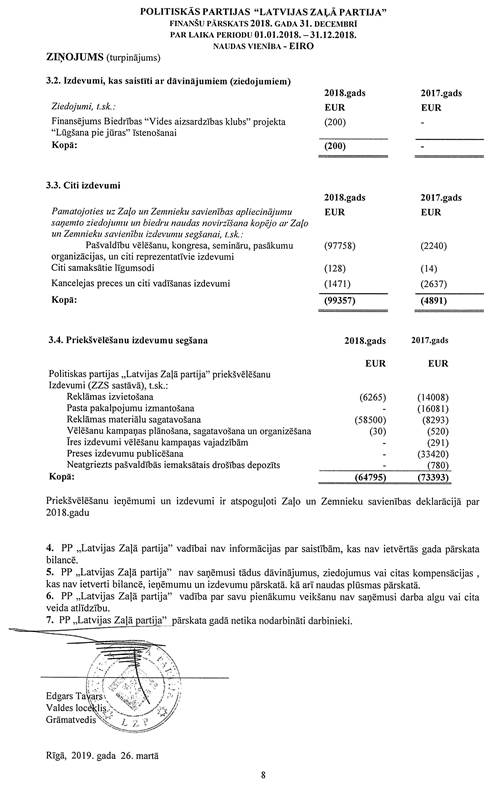 Politiskās partijas "Latvijas Zaļā partija", reģ. Nr. 40008044893, gada pārskats par 2018.gadu