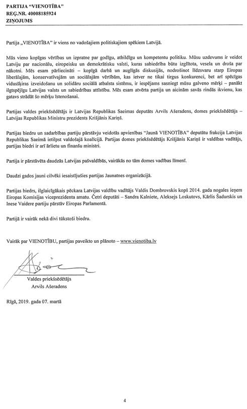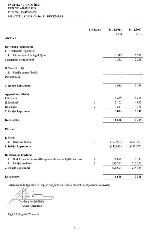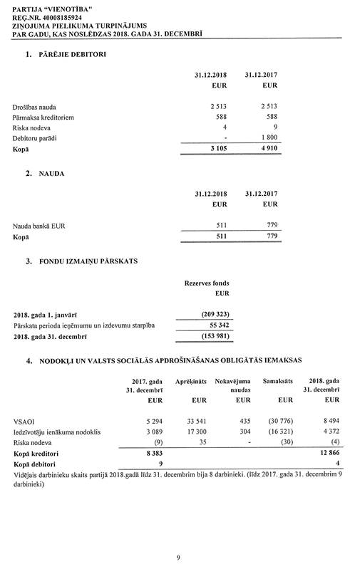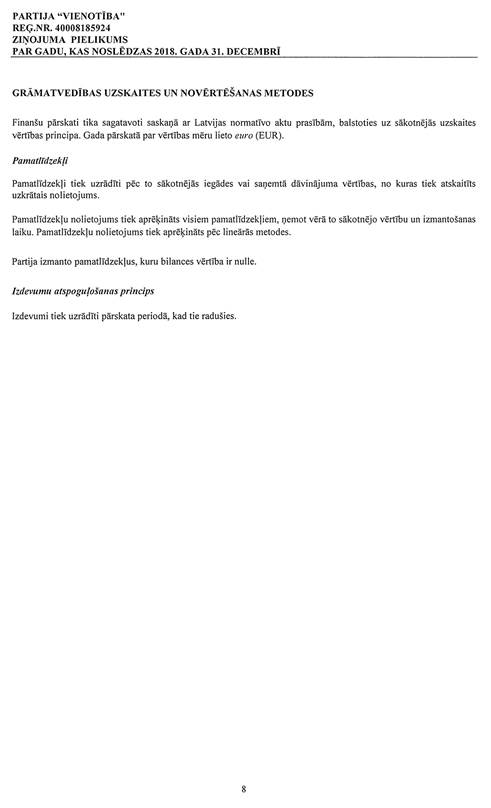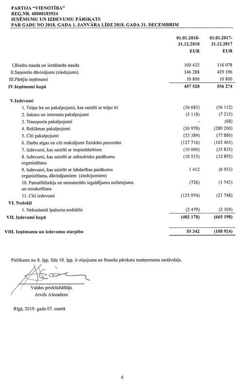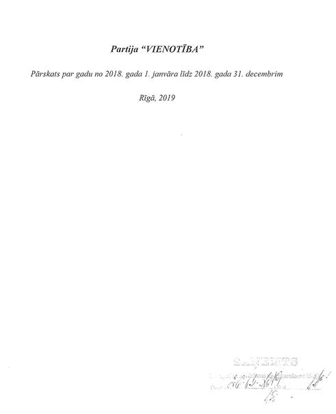 Politiskās partijas "Partija "VIENOTĪBA"", reģ. Nr. 40008185924, gada pārskats par 2018.gadu