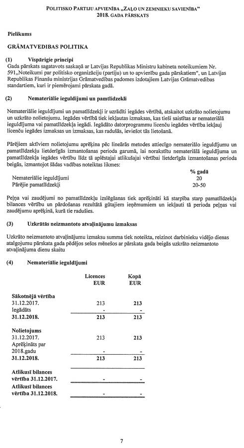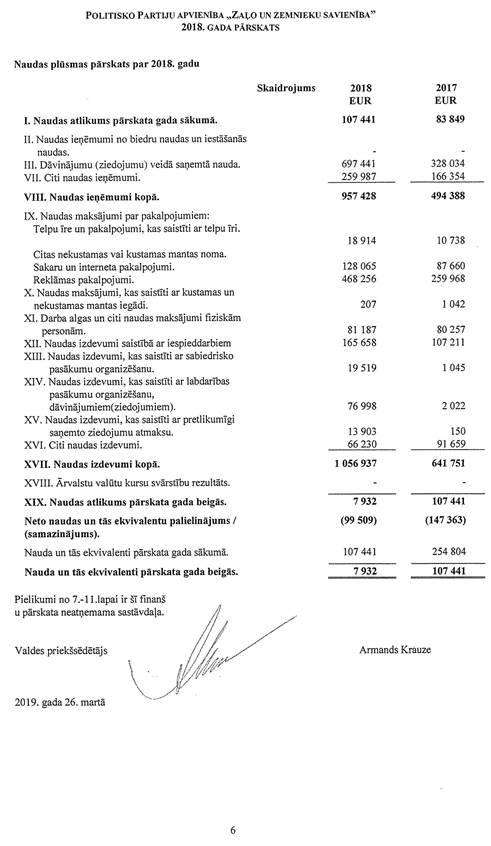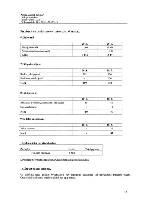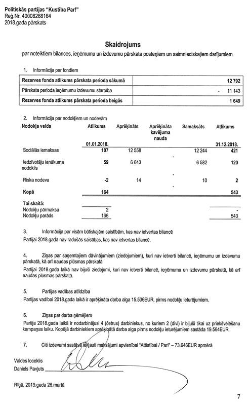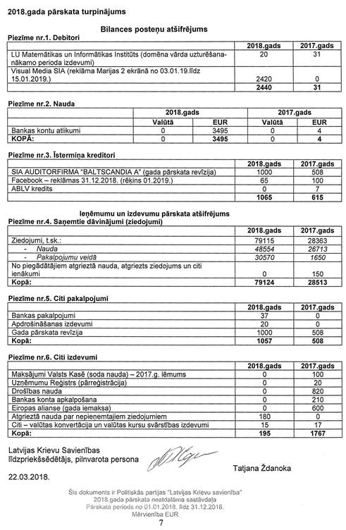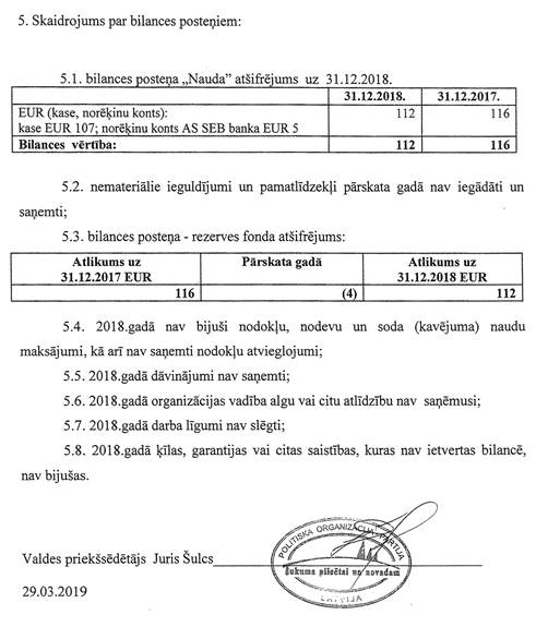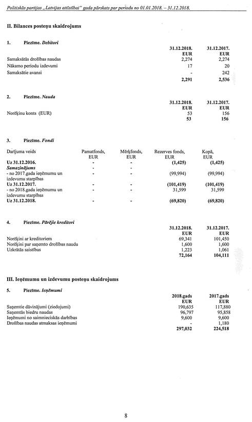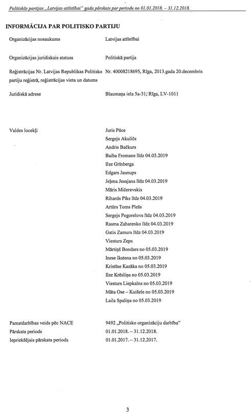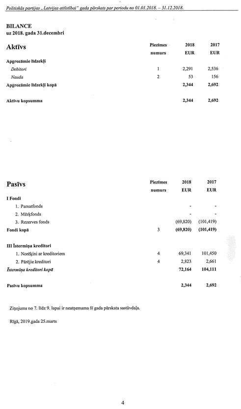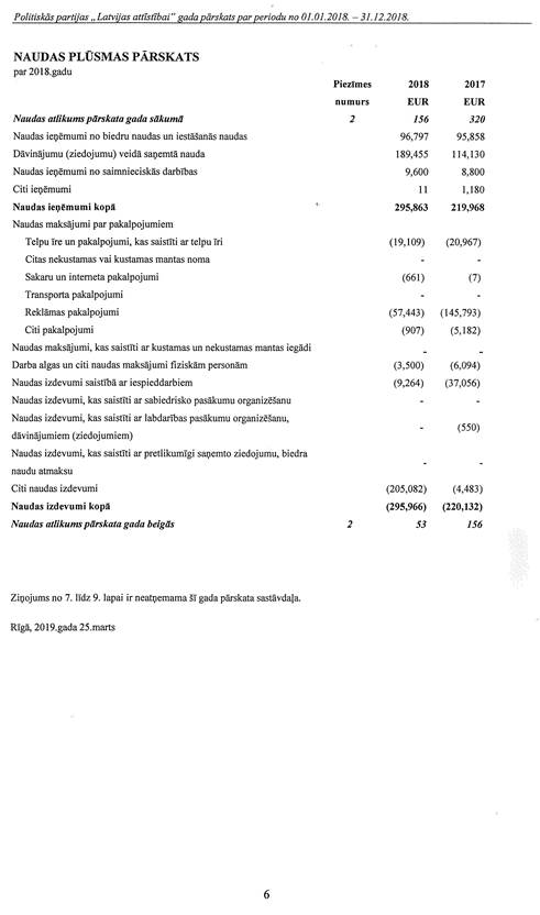 Politiskās partijas "Latvijas attīstībai", reģ. Nr. 40008218695, gada pārskats par 2018.gadu