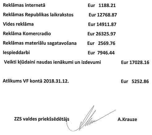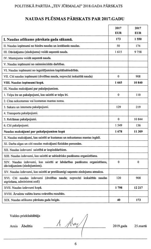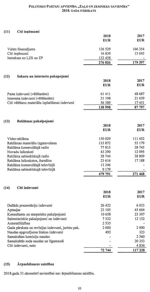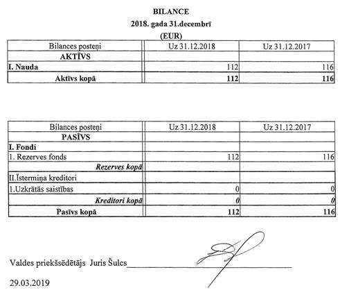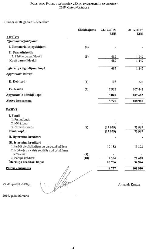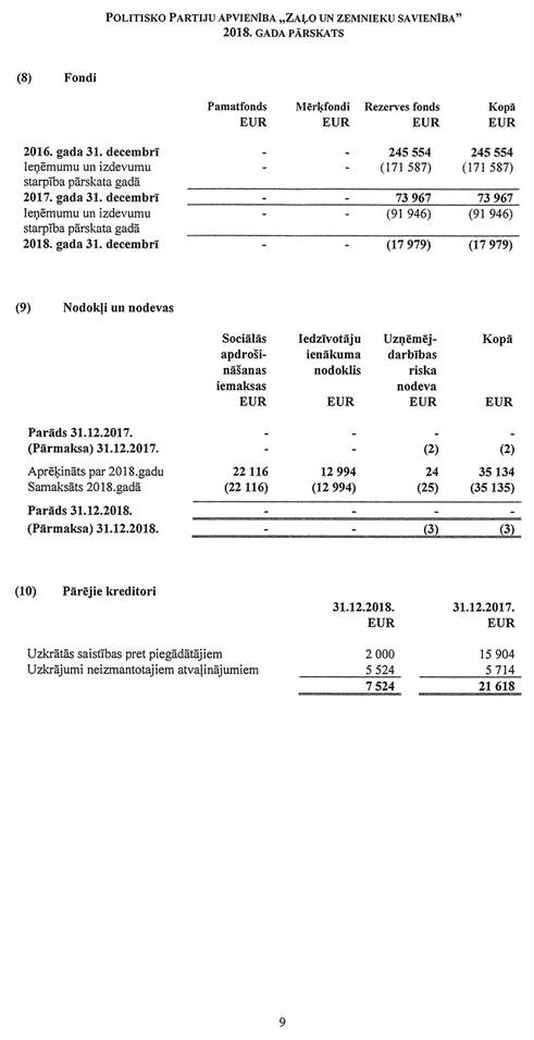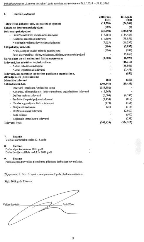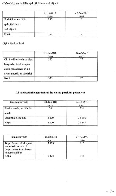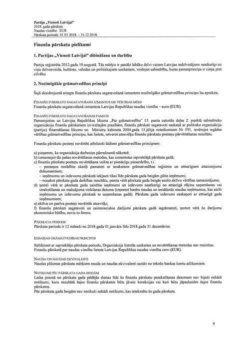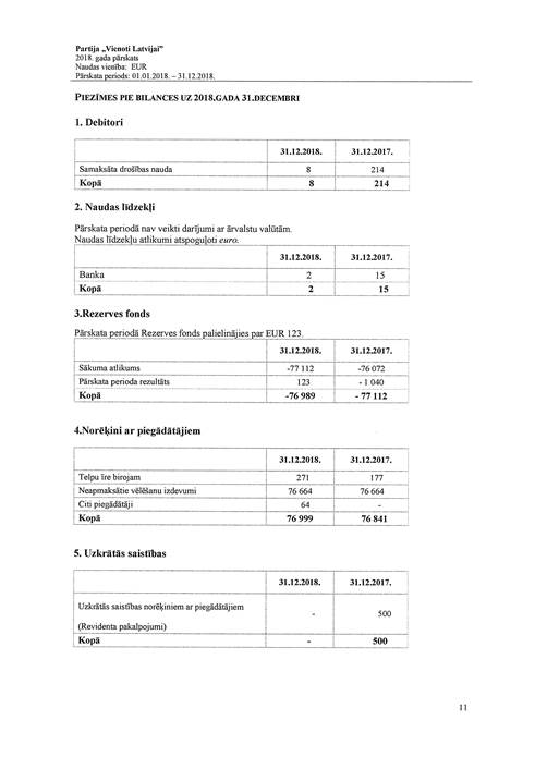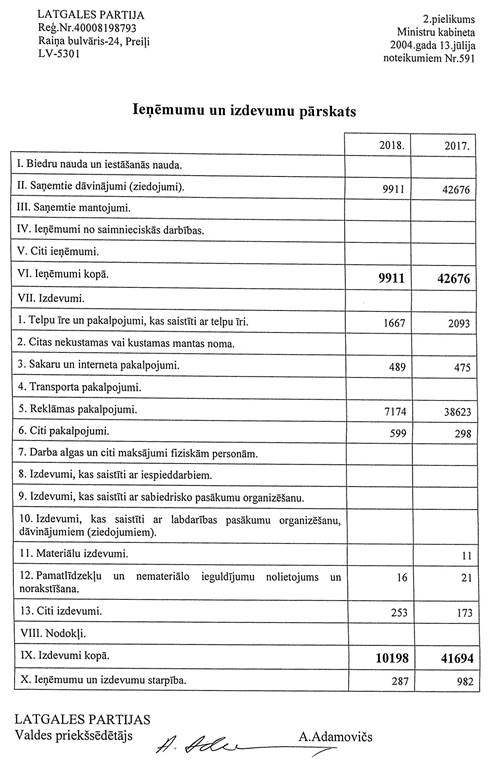 Politiskās partijas "Latvijas attīstībai", reģ. Nr. 40008218695, gada pārskats par 2018.gadu