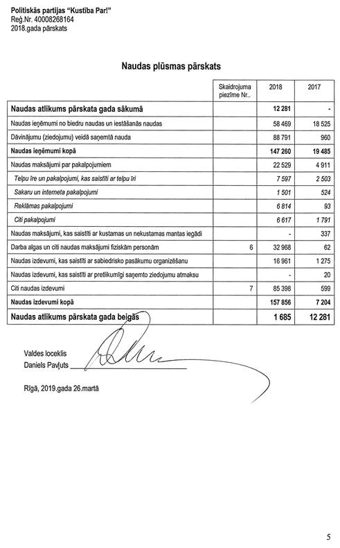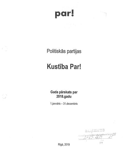 Politiskās partijas "Kustība Par!", reģ. Nr. 40008268164, gada pārskats par 2018.gadu