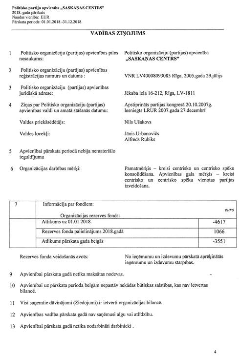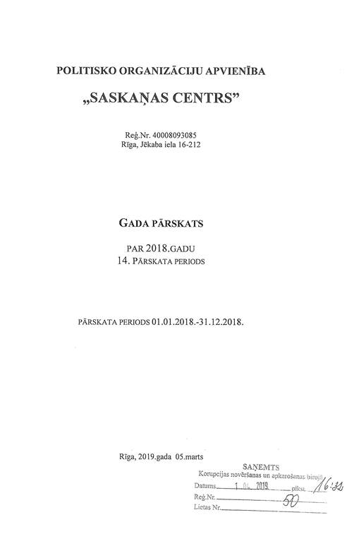 Politisko partiju apvienības "Saskaņas Centrs", reģ. Nr. 40008093085, gada pārskats par 2018.gadu