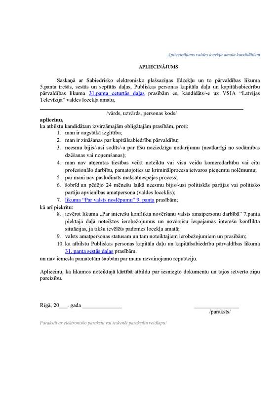 - apliecinājums par atbilstību Sabiedrisko elektronisko plašsaziņas līdzekļu
