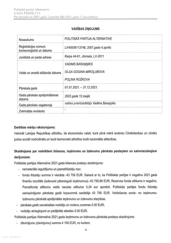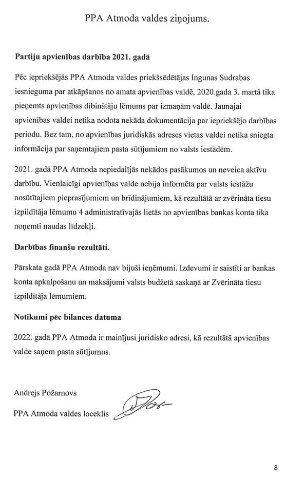Vadības ziņojums pie Kristīgi Progresīvu partijas 2021.gada pārskata