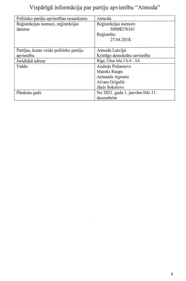Politiskās partijas "Kristīgi progresīvā partija", reģ. Nr. 40008137182, 2021.gada pārskats