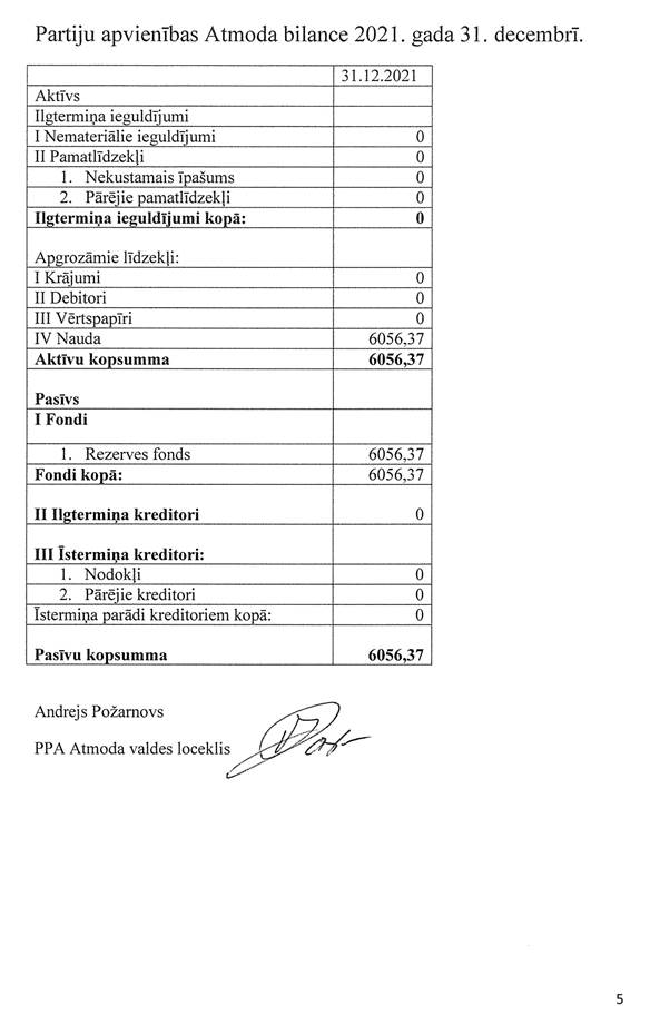 Partijas mērķis - veicināt katra Latvijas iedzīvotāja labklājības pieaugumu, vispusīgi izmantojot kompetentu, uz zinātni balstītu saimniecisku pieeju valsts un pašvaldību vadīšanā un pārvaldē. Pārskata gadā partija saņēma no saviem biedriem ziedojumus 277.82 EUR apmēra, lai segtu kārtējos izdevumus 272.06 EUR apmēra. 2022. gadā partija plāno piedalīties Saeimas vēlēšanās, nodrošinot vēlēšanu kompānijas finansējumu ar ziedojumiem.