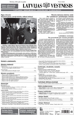 Šī laidiena elektroniskajai versijai ir informatīvs raksturs. Oficiālā publikācija pieejama laikraksta "Latvijas Vēstnesis" drukas versijā. Piedāvājam lejuplādēt digitalizētā laidiena saturu (no Latvijas Nacionālās bibliotēkas krājuma).