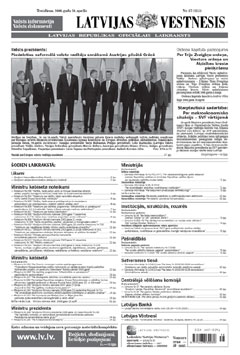 Šī laidiena elektroniskajai versijai ir informatīvs raksturs. Oficiālā publikācija pieejama laikraksta "Latvijas Vēstnesis" drukas versijā. Piedāvājam lejuplādēt digitalizētā laidiena saturu (no Latvijas Nacionālās bibliotēkas krājuma).
