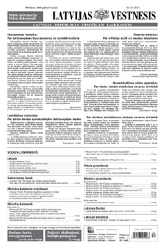 Šī laidiena elektroniskajai versijai ir informatīvs raksturs. Oficiālā publikācija pieejama laikraksta "Latvijas Vēstnesis" drukas versijā. Piedāvājam lejuplādēt digitalizētā laidiena saturu (no Latvijas Nacionālās bibliotēkas krājuma).