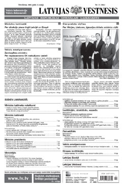 Šī laidiena elektroniskajai versijai ir informatīvs raksturs. Oficiālā publikācija pieejama laikraksta "Latvijas Vēstnesis" drukas versijā. Piedāvājam lejuplādēt digitalizētā laidiena saturu (no Latvijas Nacionālās bibliotēkas krājuma).