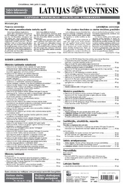 Šī laidiena elektroniskajai versijai ir informatīvs raksturs. Oficiālā publikācija pieejama laikraksta "Latvijas Vēstnesis" drukas versijā. Piedāvājam lejuplādēt digitalizētā laidiena saturu (no Latvijas Nacionālās bibliotēkas krājuma).