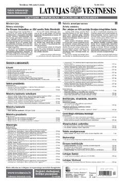 Šī laidiena elektroniskajai versijai ir informatīvs raksturs. Oficiālā publikācija pieejama laikraksta "Latvijas Vēstnesis" drukas versijā. Piedāvājam lejuplādēt digitalizētā laidiena saturu (no Latvijas Nacionālās bibliotēkas krājuma).