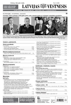 Šī laidiena elektroniskajai versijai ir informatīvs raksturs. Oficiālā publikācija pieejama laikraksta "Latvijas Vēstnesis" drukas versijā. Piedāvājam lejuplādēt digitalizētā laidiena saturu (no Latvijas Nacionālās bibliotēkas krājuma).
