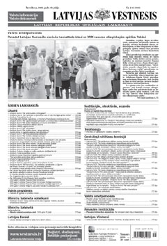 Šī laidiena elektroniskajai versijai ir informatīvs raksturs. Oficiālā publikācija pieejama laikraksta "Latvijas Vēstnesis" drukas versijā. Piedāvājam lejuplādēt digitalizētā laidiena saturu (no Latvijas Nacionālās bibliotēkas krājuma).